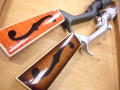 ギタークラフト職人斉藤氏が、ギターを作る素材と製法で仕上げたグリップ。今回はマホガニー、メープルを使用。クリームとホワイトのセルロイドに加え、ベッコウも巻いてもらいました。ピックアップと弦をつければ、いい音を奏でてくれるはず。ホンモノの違いを見てください。