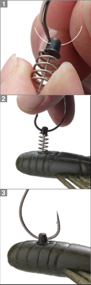 ?センターピンをワームに刺します。センターピンがネコリグマスターを垂直に誘導します。