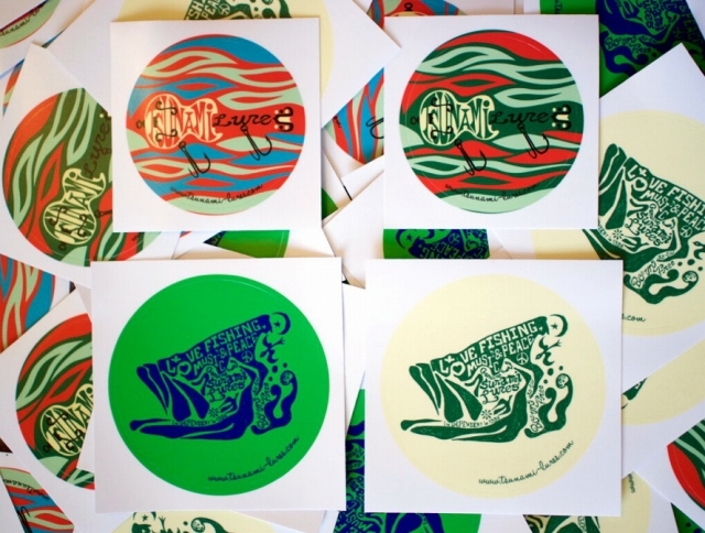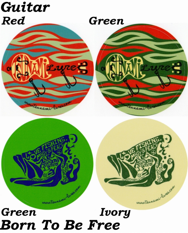 【 Guitar 】 324円Size:直径 80mmColor : Red、Green【 Born To Be Free 】 388円Size:直径 100mmColor : Green、Ivoryタックルボックスや車等、屋外で使用するものにも貼れる、耐候性のあるステッカーです。
